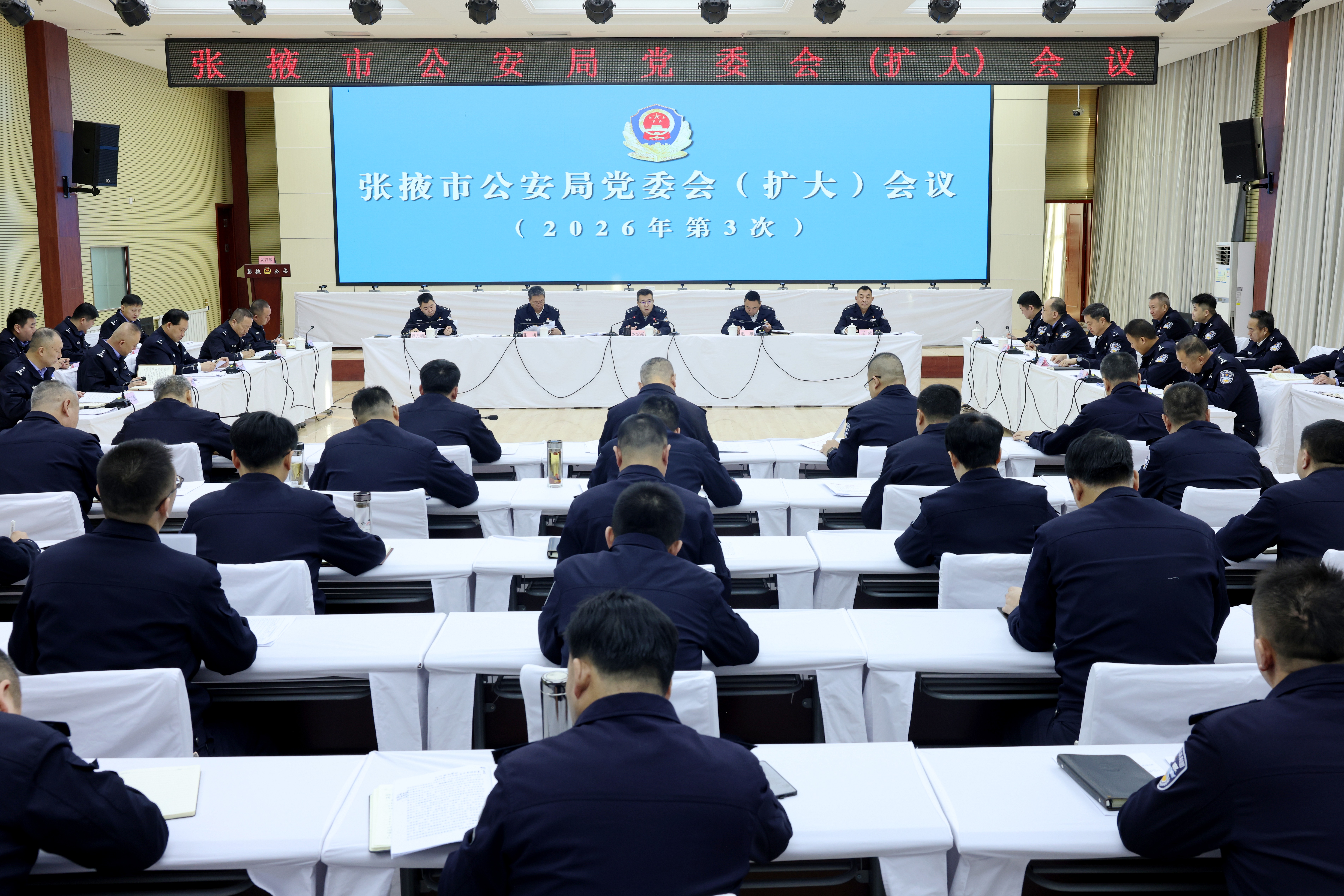 會(huì)議要求,一要堅(jiān)持黨對(duì)公安工作的絕對(duì)領(lǐng)導(dǎo),始終把政治建設(shè)擺在首位,以黨的政治建設(shè)鑄魂,將“兩個(gè)維護(hù)”作為最高政治原則和根本政治規(guī)矩,著力鍛造忠誠(chéng)干凈擔(dān)當(dāng)?shù)男聲r(shí)代公安鐵軍。二要加力主動(dòng)創(chuàng)安創(chuàng)穩(wěn),推動(dòng)公共安全治理模式向事前預(yù)防、主動(dòng)預(yù)防轉(zhuǎn)型,以“開年第一訓(xùn)”和“開年第一訪”為牽引,持續(xù)深化派出所“兩項(xiàng)”機(jī)制改革,用好“六防”措施和“六巡”模式,做細(xì)做實(shí)矛盾糾紛化解、重復(fù)警情治理和社會(huì)面巡邏防控,全力維護(hù)社會(huì)大局持續(xù)穩(wěn)定。三要聚焦主責(zé)主業(yè),以“開年第一仗”為抓手,嚴(yán)厲打擊各類突出違法犯罪,認(rèn)真研究發(fā)案規(guī)律和季節(jié)性犯罪特點(diǎn),加強(qiáng)全環(huán)節(jié)全要素全鏈條研判打擊,集中攻堅(jiān)偵破一批大要案件,切實(shí)提升群眾安全感和滿意度。四要主動(dòng)圍繞中心、服務(wù)大局,找準(zhǔn)推進(jìn)“三大警務(wù)”“千里河西大聯(lián)防”與落實(shí)省廳“生態(tài)警務(wù)、文旅警務(wù)、產(chǎn)業(yè)警務(wù)、暢安警務(wù)、民生警務(wù)”的切入點(diǎn)、著力點(diǎn),在守護(hù)綠水青山、服務(wù)產(chǎn)業(yè)發(fā)展、護(hù)航旅游經(jīng)濟(jì)、優(yōu)化營(yíng)商環(huán)境等方面精準(zhǔn)施策、持續(xù)發(fā)力,全面提升張掖公安辨識(shí)度。五要縱深推進(jìn)全市深化新時(shí)代法治公安建設(shè)工作會(huì)議各項(xiàng)任務(wù)落地落實(shí),著力構(gòu)建全層級(jí)全警種、全警情全案件、全流程全要素執(zhí)法監(jiān)督管理體系。扎實(shí)開展“檢警”同堂培訓(xùn),圍繞執(zhí)法新領(lǐng)域、一線新問題、社會(huì)新業(yè)態(tài),加大辦案指引制定和提前介入指導(dǎo)工作力度,確保實(shí)現(xiàn)最佳法律效果、政治效果、社會(huì)效果。六要狠抓隊(duì)伍紀(jì)律作風(fēng)建設(shè),全面壓實(shí)從嚴(yán)管黨治警責(zé)任,持續(xù)強(qiáng)化對(duì)“槍車酒賭毒密網(wǎng)”等關(guān)鍵環(huán)節(jié)的排查整治與規(guī)范管理,鞏固素質(zhì)能力提升“十大行動(dòng)”和“青年民輔警小課堂”經(jīng)驗(yàn)做法,提升隊(duì)伍專業(yè)素養(yǎng)和實(shí)戰(zhàn)能力。