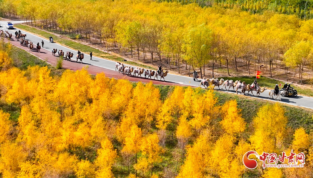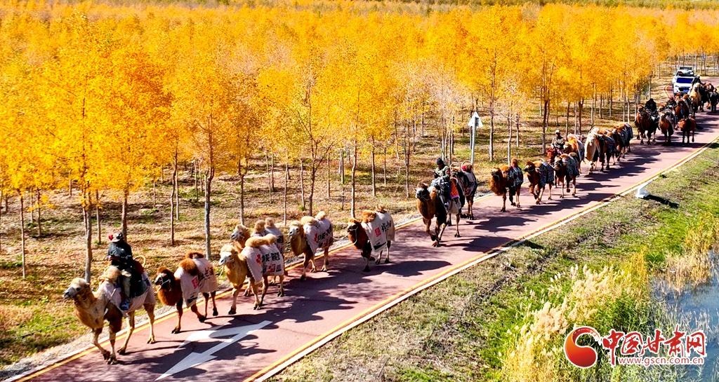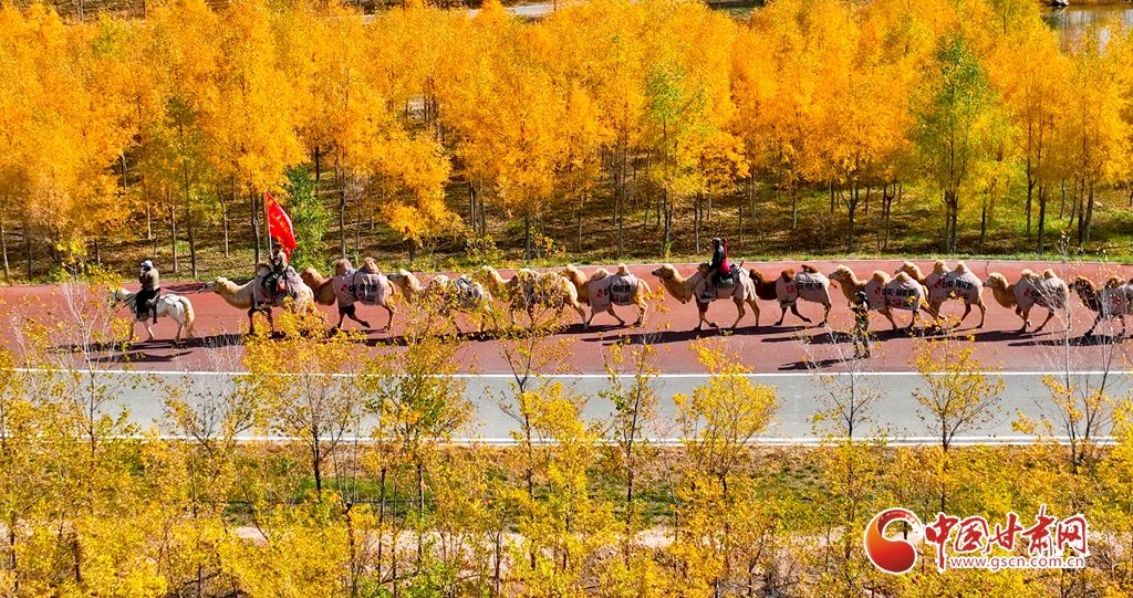 金秋十月,張掖市甘州區(qū)黑河林場萬畝胡楊林迎來流金季節(jié)。10月15日,一支駝隊行進其間,領(lǐng)略這最美的時光。這片昔日亂石林立、滿目瘡痍的黑河亂石灘,如今已成為6萬畝的城市森林,游人、駝隊行進其中,與金色林海共同構(gòu)成了一幅動人的生態(tài)畫卷。