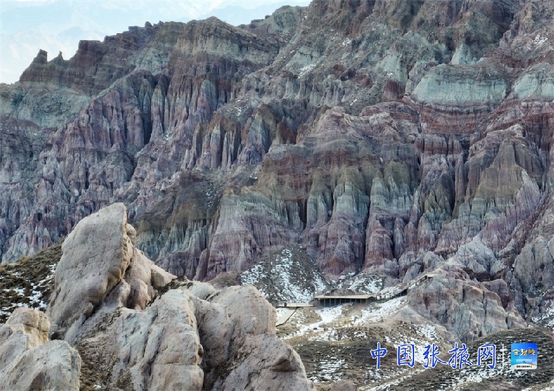 ?????12月8日,位于張掖市肅南縣境內(nèi)的外星谷星際主題地質(zhì)公園在冬日陽光的照耀下色彩繽紛,吸引眾多游客前來探秘“地球上的外星世界”。