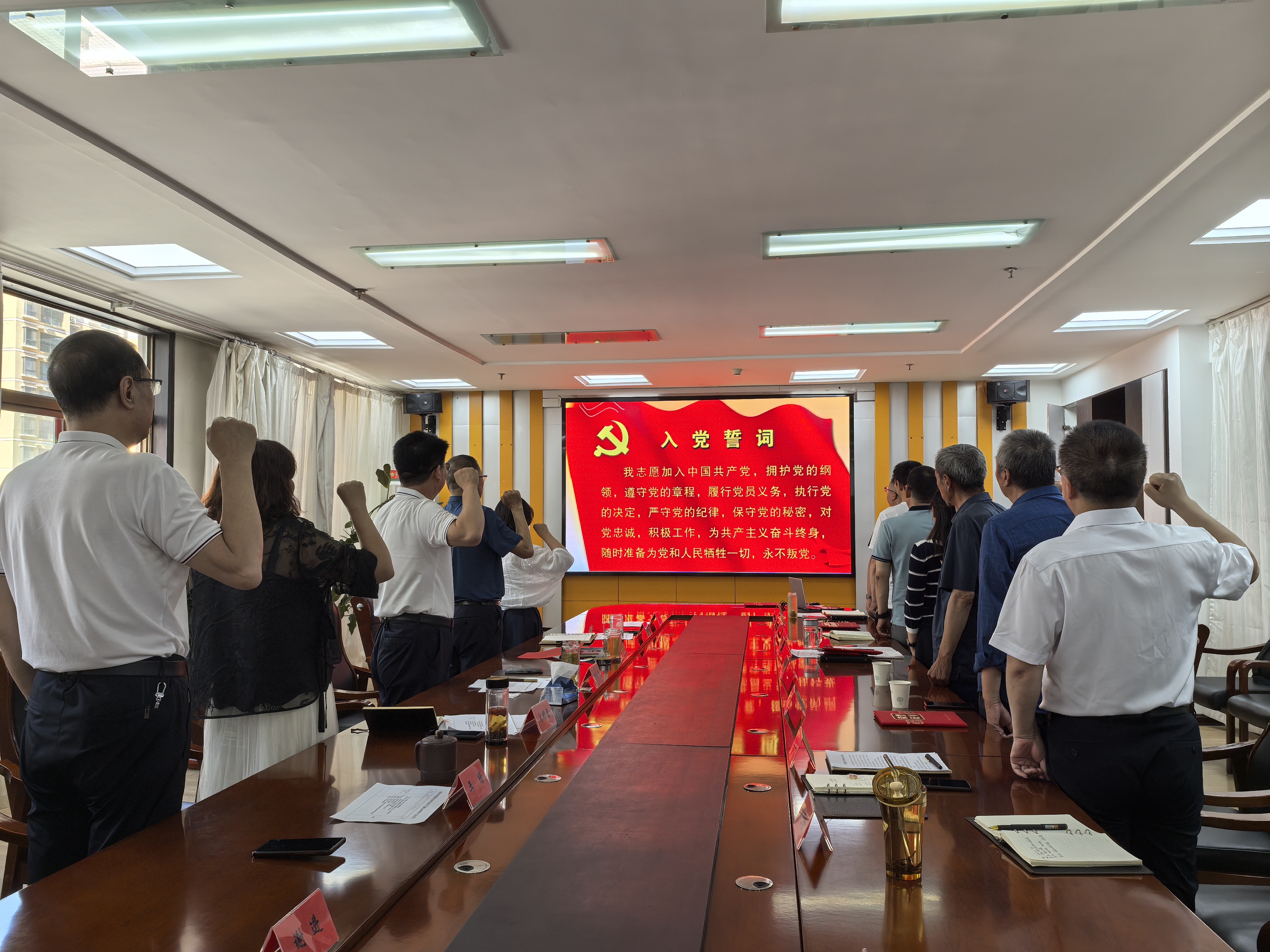 大會(huì)在莊嚴(yán)的國(guó)歌聲中正式開(kāi)始,全體黨員莊嚴(yán)肅立,齊聲高唱國(guó)歌,隨后進(jìn)入重溫入黨誓詞環(huán)節(jié),“我志愿加入中國(guó)共產(chǎn)黨,擁護(hù)黨的綱領(lǐng),遵守黨的章程……”一句句誓詞鏗鏘有力、擲地有聲,既重溫了入黨時(shí)的初心與承諾,也彰顯了全體黨員對(duì)黨的忠誠(chéng)與擔(dān)當(dāng)。通過(guò)觀看《情景再現(xiàn)中共一大的召開(kāi)》《在場(chǎng)》等微電影,再次重溫了中共一大召開(kāi)的這段黨的歷史,感受到了老一輩黨員在面對(duì)極其困難的局面時(shí),堅(jiān)持初心不改變、信仰不動(dòng)搖、忠誠(chéng)于黨的崇高情懷。黨員們紛紛表示在今后的學(xué)習(xí)工作中要時(shí)刻保持這種情懷,不斷提升學(xué)習(xí)能力和服務(wù)水平。