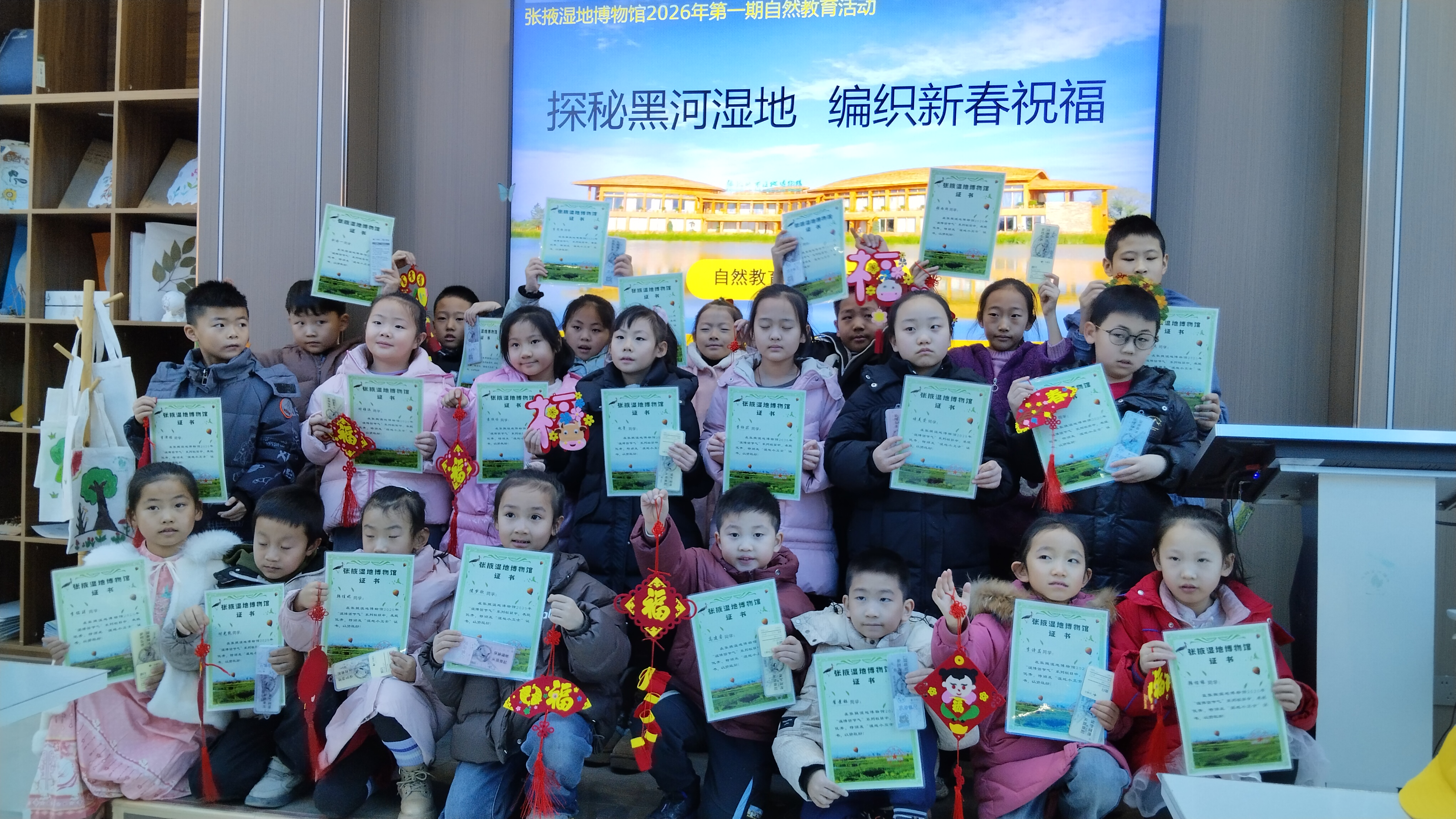 活動(dòng)尾聲,導(dǎo)師為每位學(xué)員頒發(fā)“濕地衛(wèi)士”證書(shū),激勵(lì)他們持續(xù)關(guān)注并參與生態(tài)保護(hù)。孩子們手持自己的掛飾與證書(shū)合影留念,臉上洋溢著滿(mǎn)滿(mǎn)的成就感,現(xiàn)場(chǎng)氛圍溫馨而充滿(mǎn)活力。