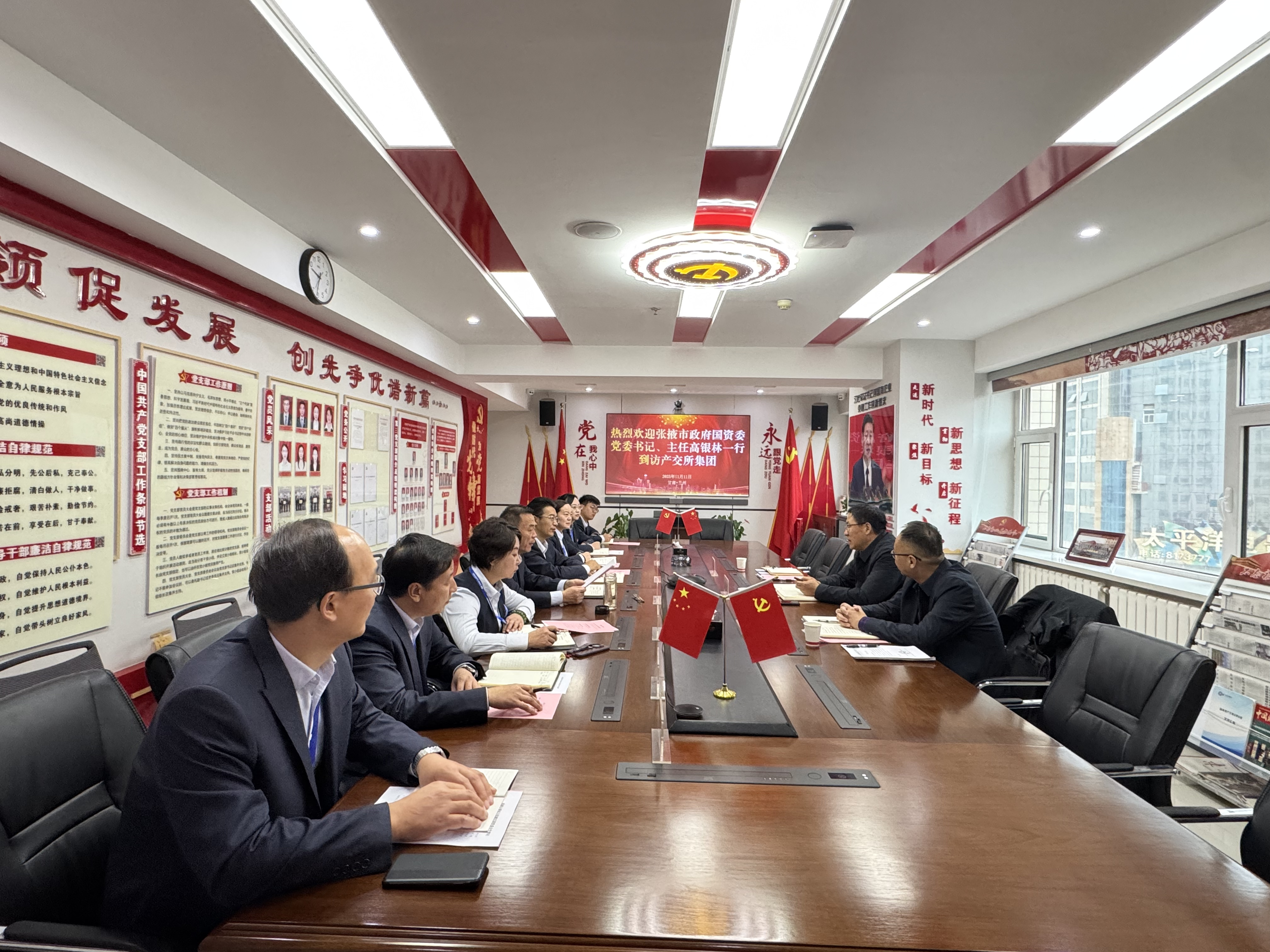 近期,張掖市政府國資委黨委書記、主任高銀林帶領相關科室和企業(yè)負責人拜訪甘肅省交所集團,就進一步深化合作,規(guī)范市屬企業(yè)產(chǎn)權(quán)交易等事宜展開深入交流。省產(chǎn)交所集團黨委書記、董事長張福元及相關領導、部室負責同志參加座談會。