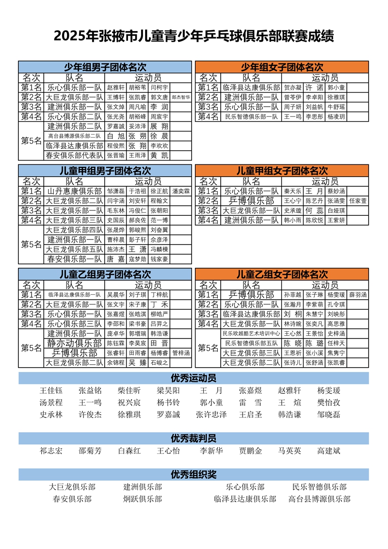 “奔跑吧·少年”兒童青少年主題健身活動暨2025年張掖市少年兒童乒乓球俱樂部聯(lián)賽圓滿閉幕