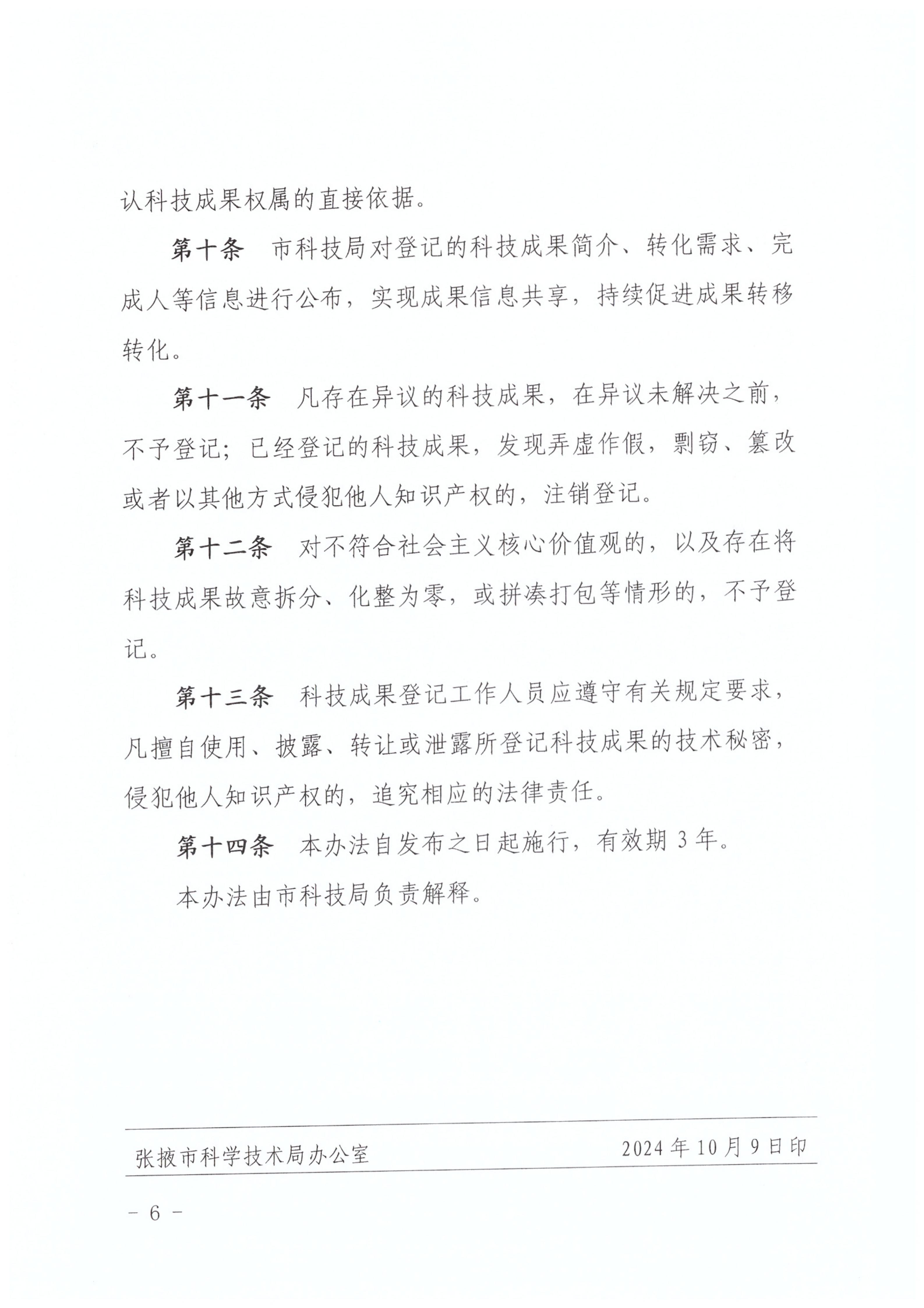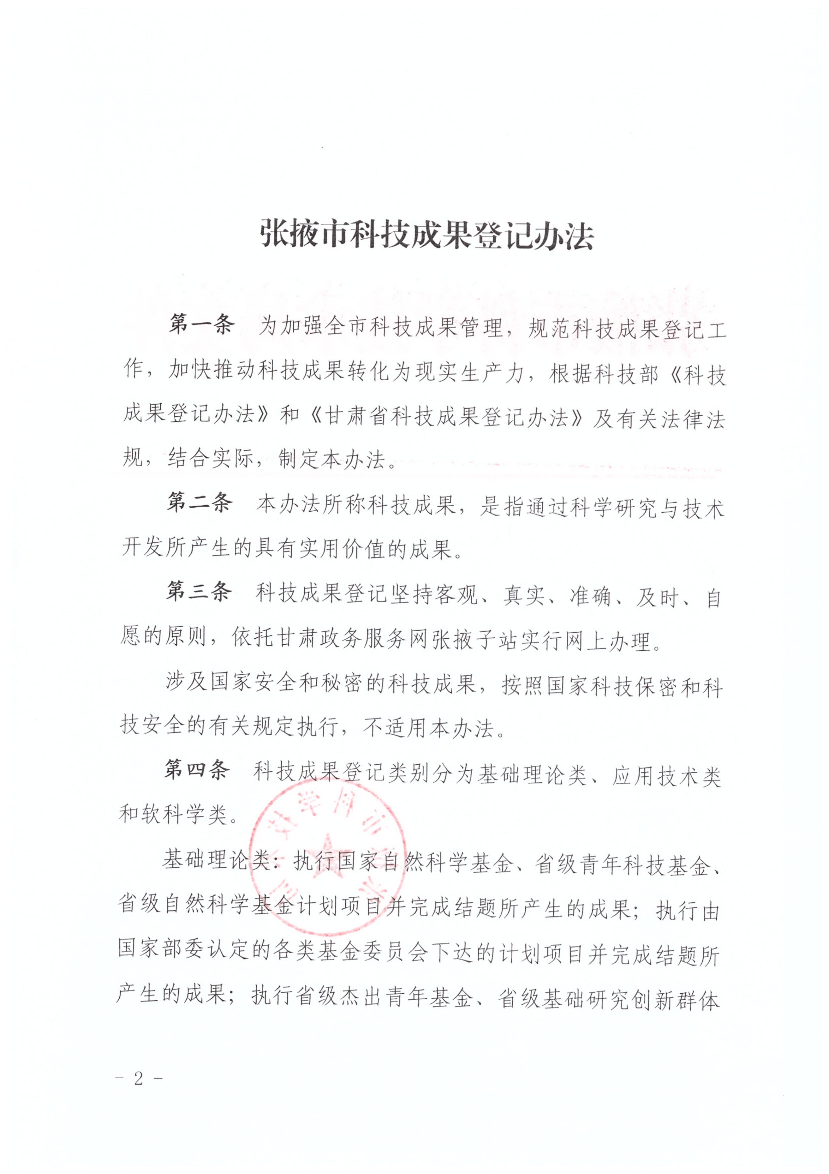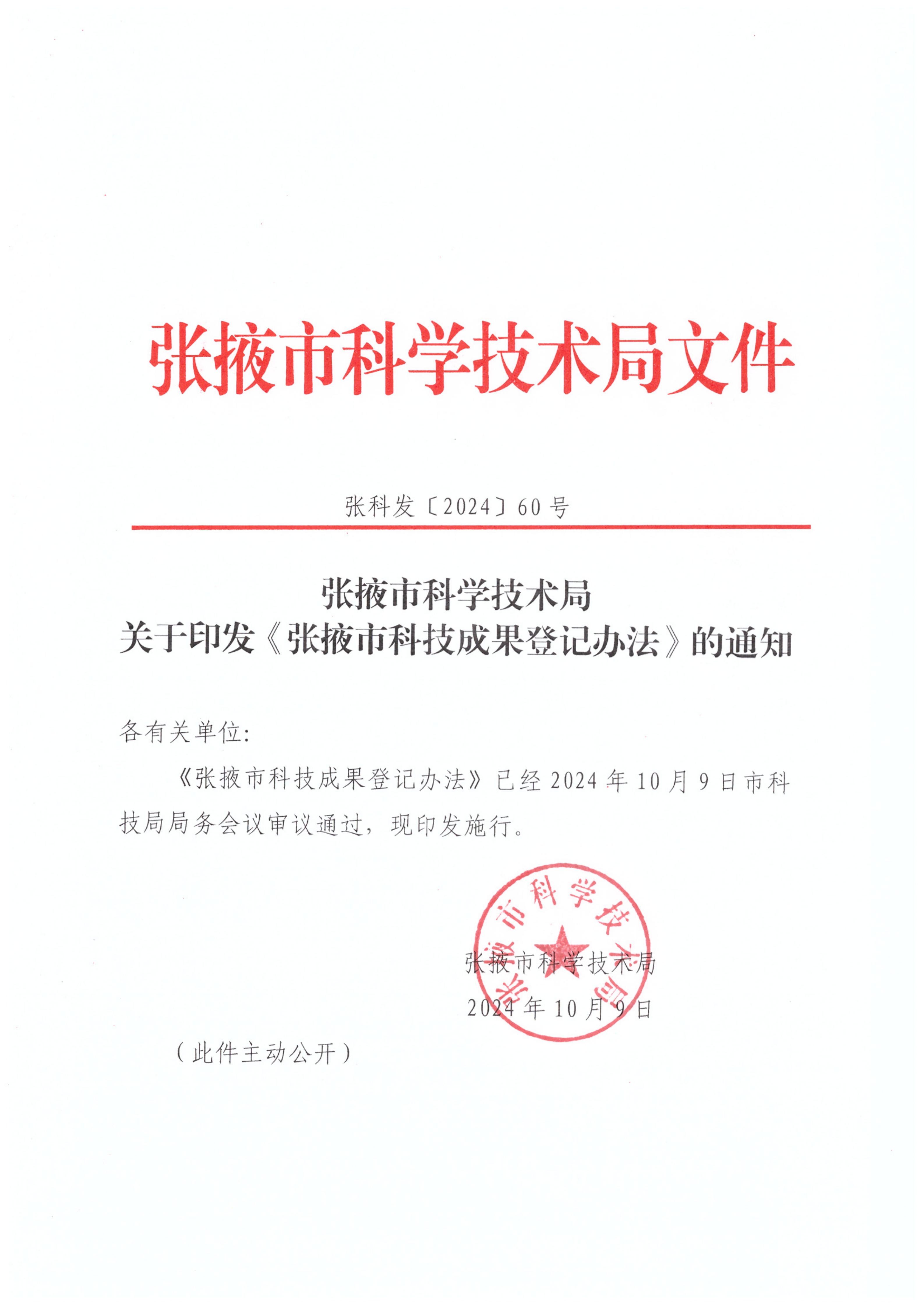 張掖市科學(xué)技術(shù)局關(guān)于印發(fā)《張掖市科技成果登記辦法》的通知