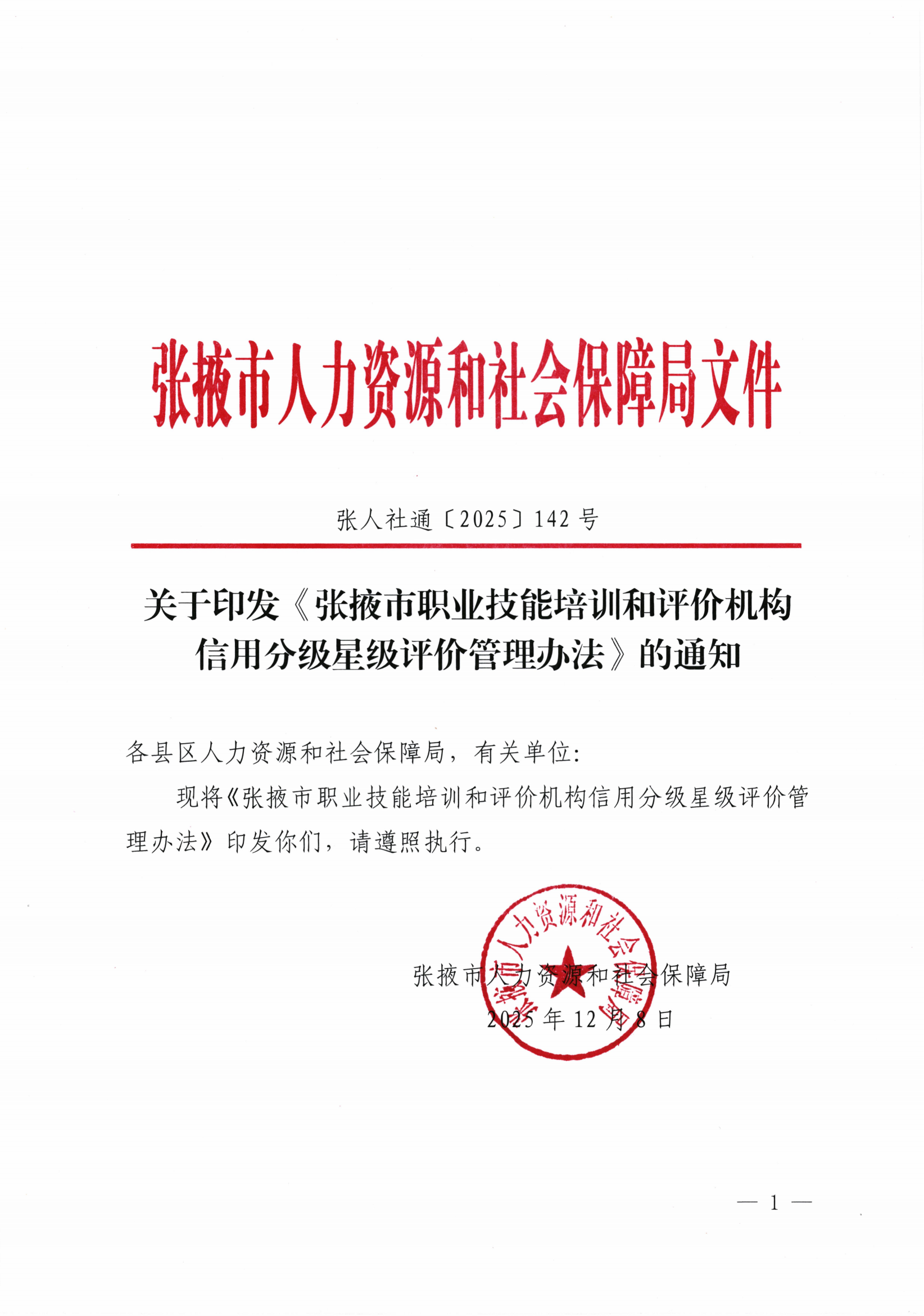 關(guān)于印發(fā)《張掖市職業(yè)技能培訓(xùn)和評價機構(gòu)信用分級星級評價管理辦法》的通知