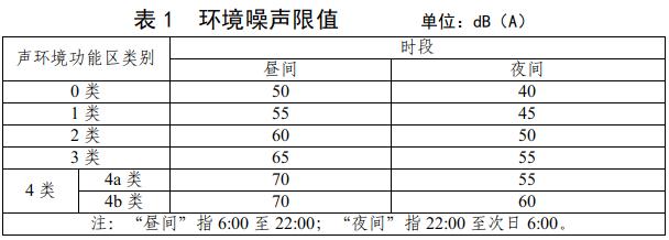 各類(lèi)聲環(huán)境功能區(qū)的環(huán)境噪聲等效聲級(jí)限值見(jiàn)表1。