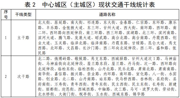 根據(jù)《中心城區(qū)道路交通規(guī)劃圖》,依據(jù)《聲環(huán)境功能區(qū)劃分技術(shù)規(guī)范》(GB/T 15190-2014)相關(guān)規(guī)定,將分布于中心城區(qū)內(nèi)的城市主干路、城市次干路及其紅線兩側(cè)一定距離內(nèi)的區(qū)域統(tǒng)一劃定為4a類(lèi)區(qū)。中心城區(qū)(主城區(qū))現(xiàn)狀交通干線見(jiàn)表2。