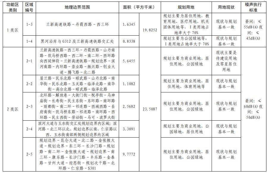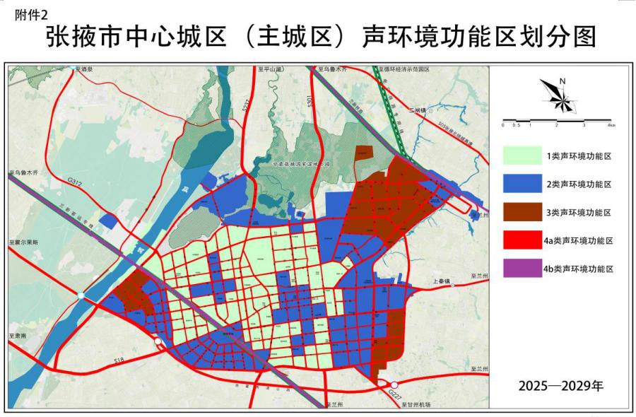 張掖市中心城區(qū)聲環(huán)境功能區(qū)劃分調(diào)整方案(2025—2029年)
